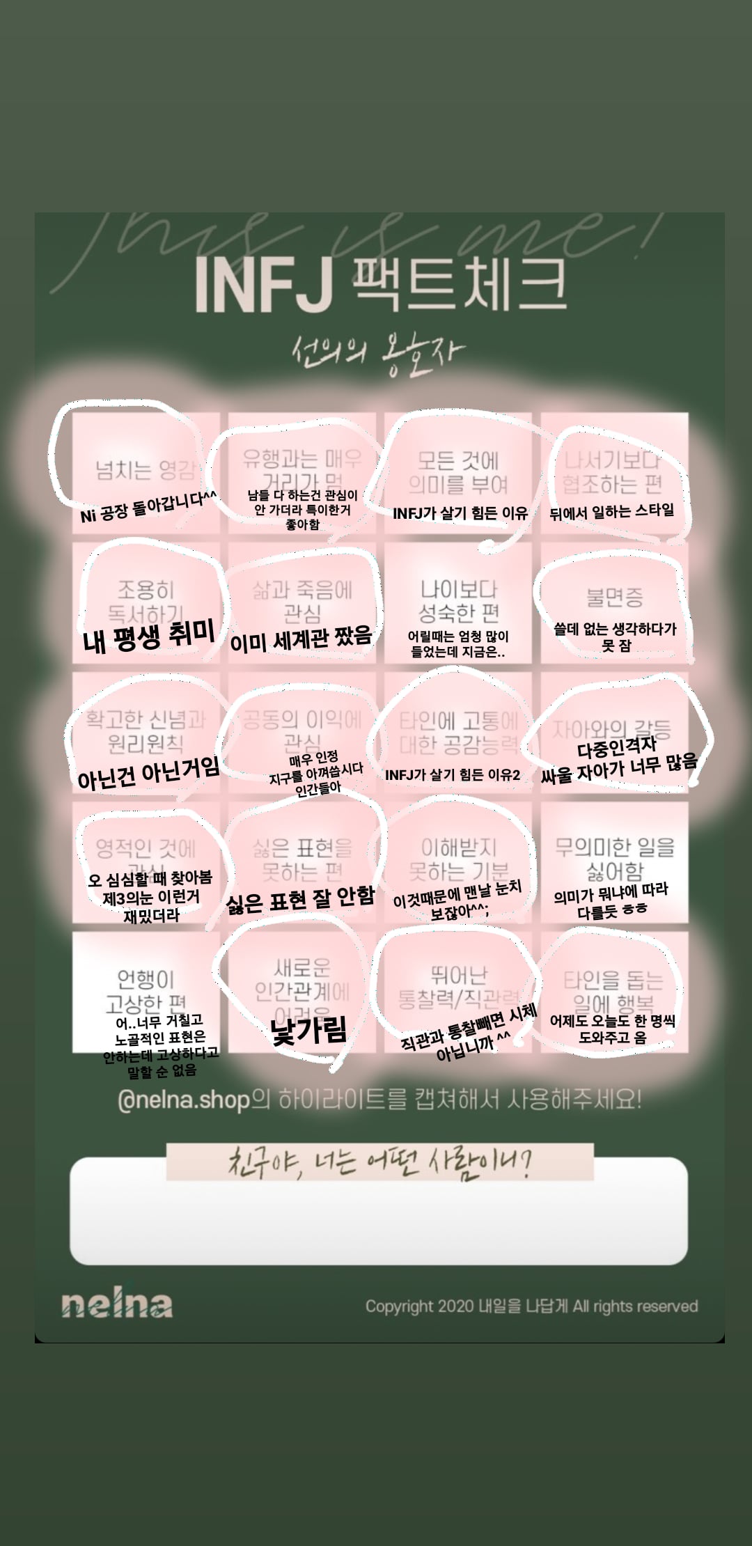 | INFJ가 쓰는 INFJ와 ISFJ의 차이 (7) | 2020.07.20 |